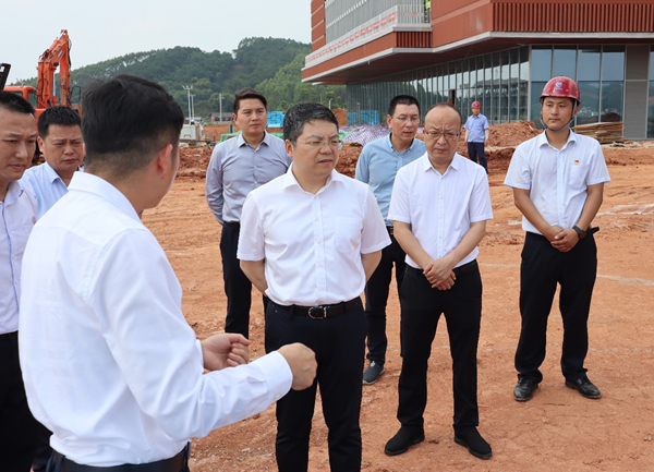 调研组一行在中国—东盟数字经济产业园项目施工现场考察