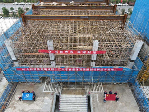 2021年10月9日,来自西南交通大学、中国建筑西南设计研究院、四川原理装配式建筑设计院等多家单位设计人员,齐聚FH网页版登录入口四川分公司承建的成都大江中学项目,与分公司总经理宋景友、副总经理张铁强等相关领导一起,共同见证了国内学校建设领域首例预制混凝土柱拼接连接吊装施工的顺利完成。